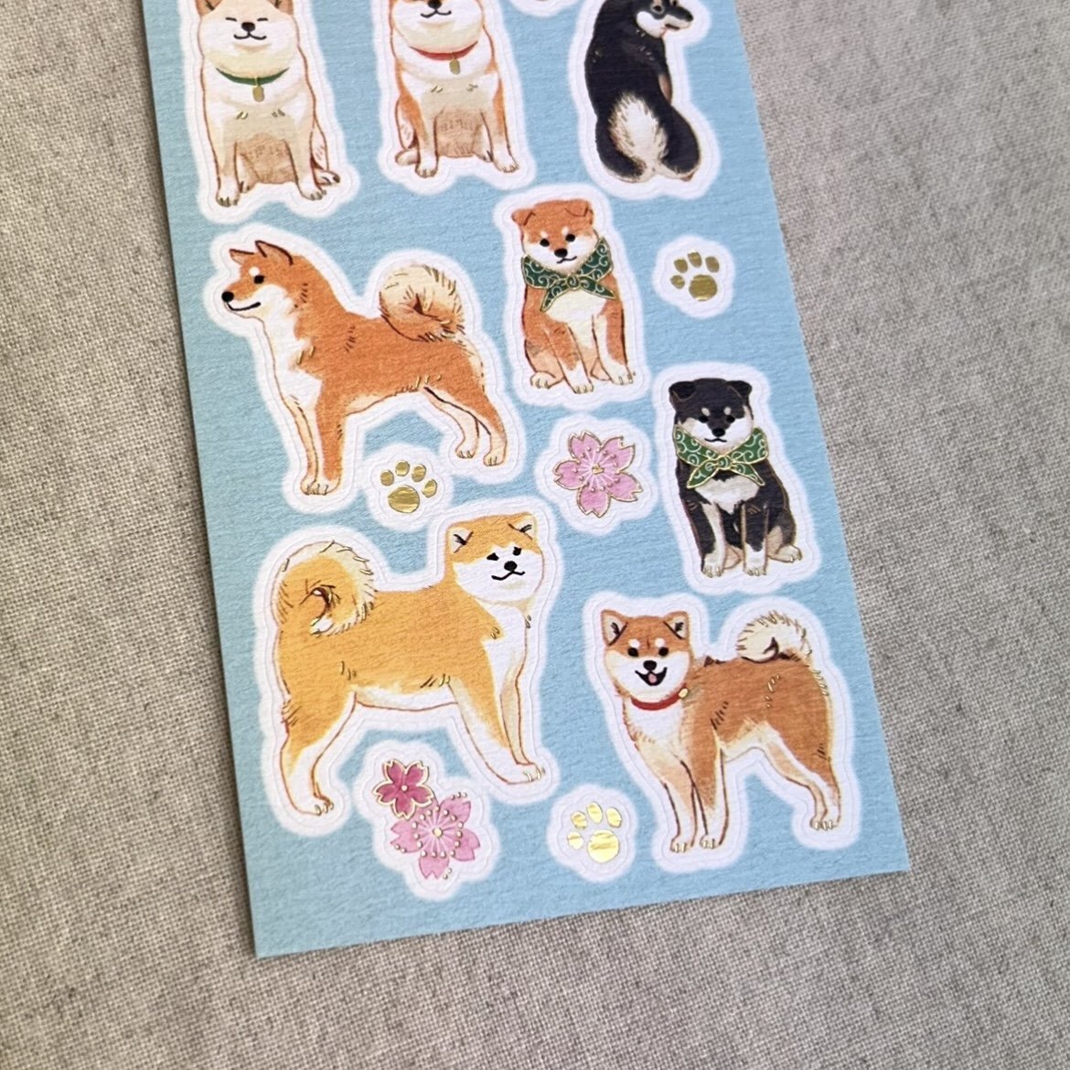 風合いの素敵な和紙に柴犬や肉球マークなどかわいい絵柄のシール。
