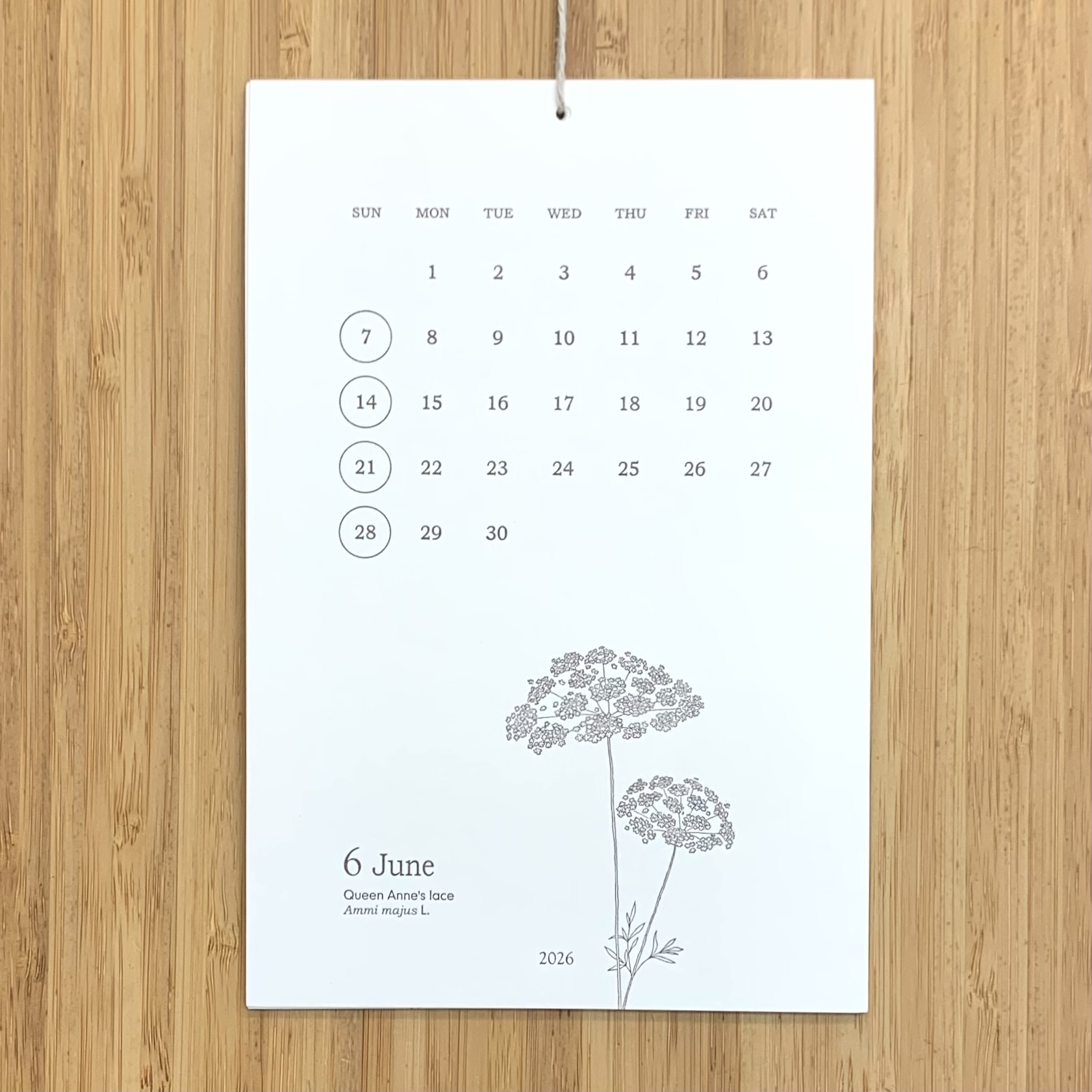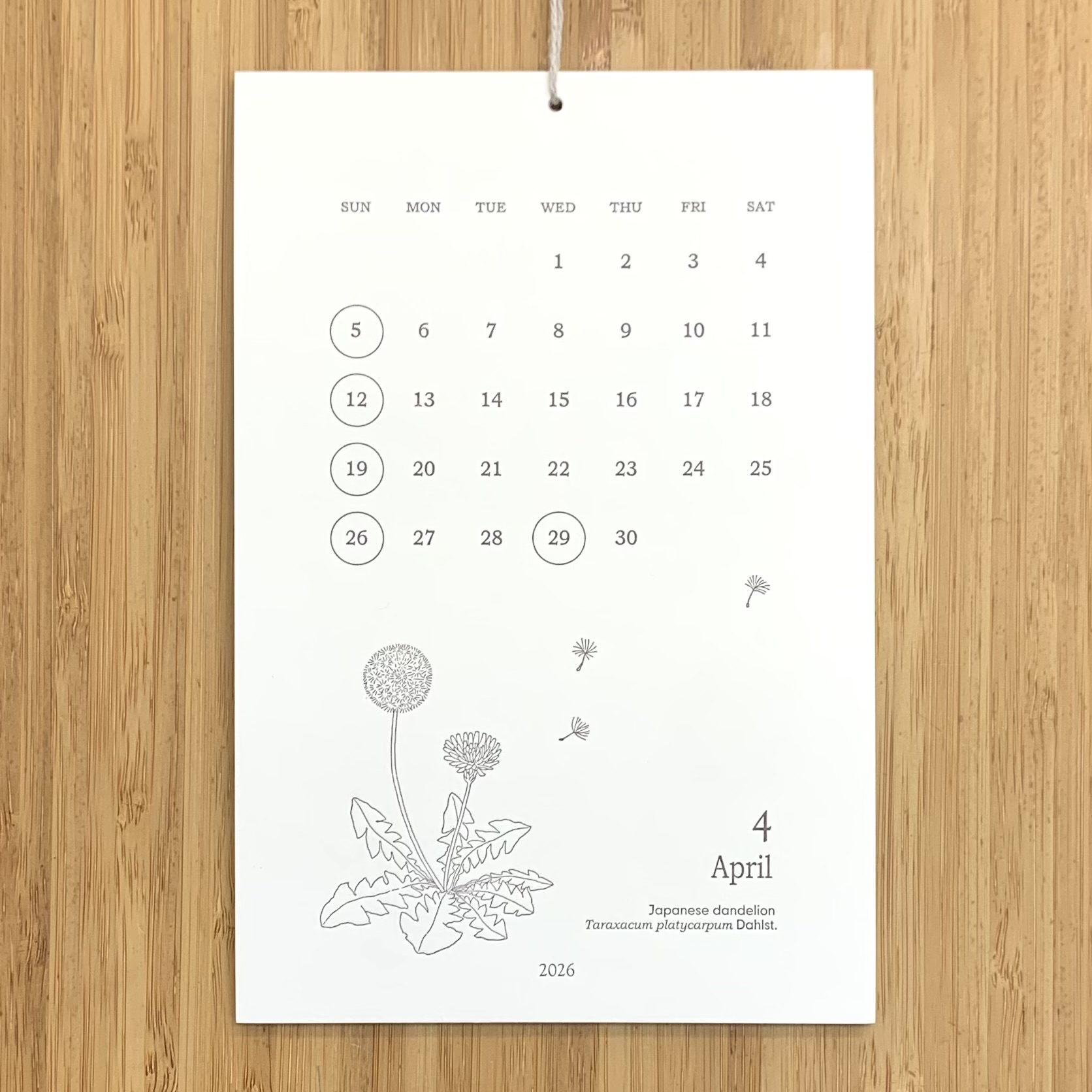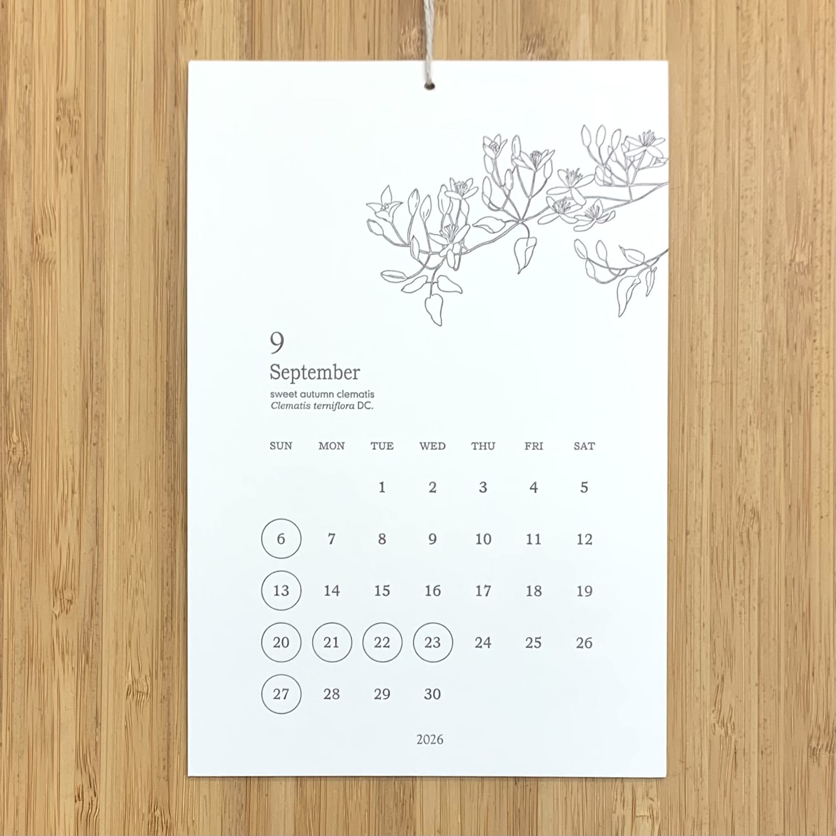味わいのある活版印刷で、上品な風合いのカレンダー。