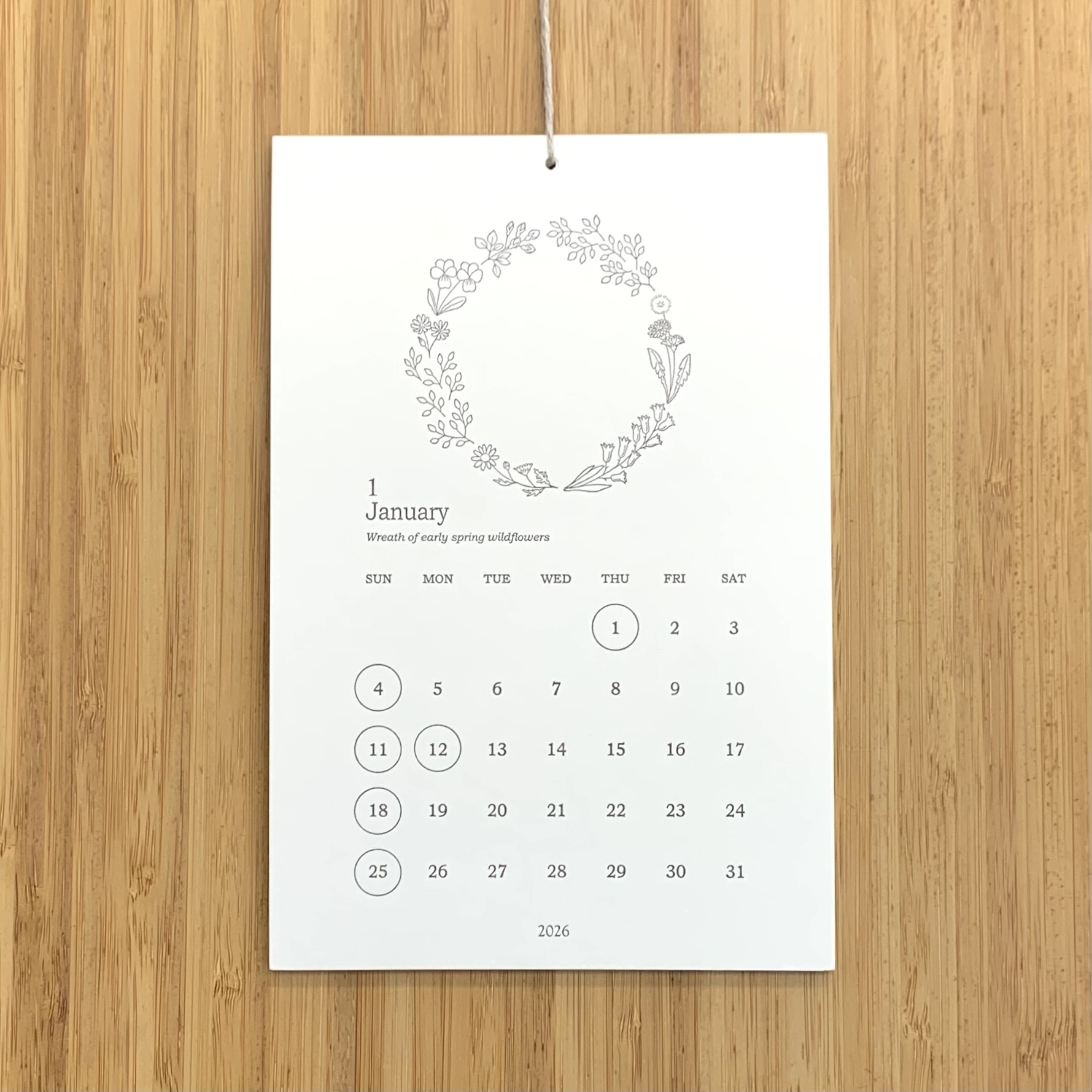 仕様 | 日曜始まり 2026年1月〜2026年12月 |