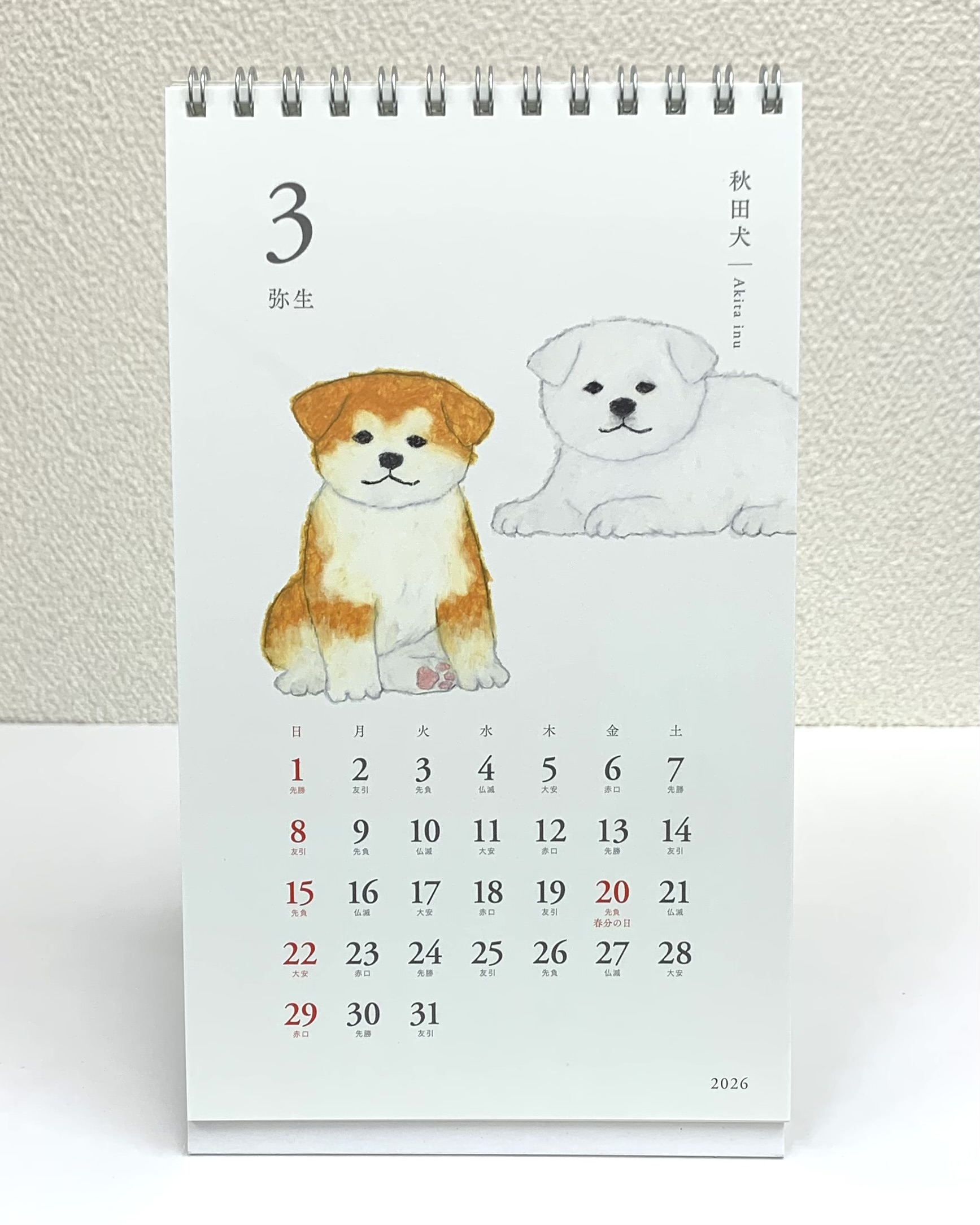 仕様 | 卓上タイプ 日曜始まり 2026年1月〜2026年12月 |