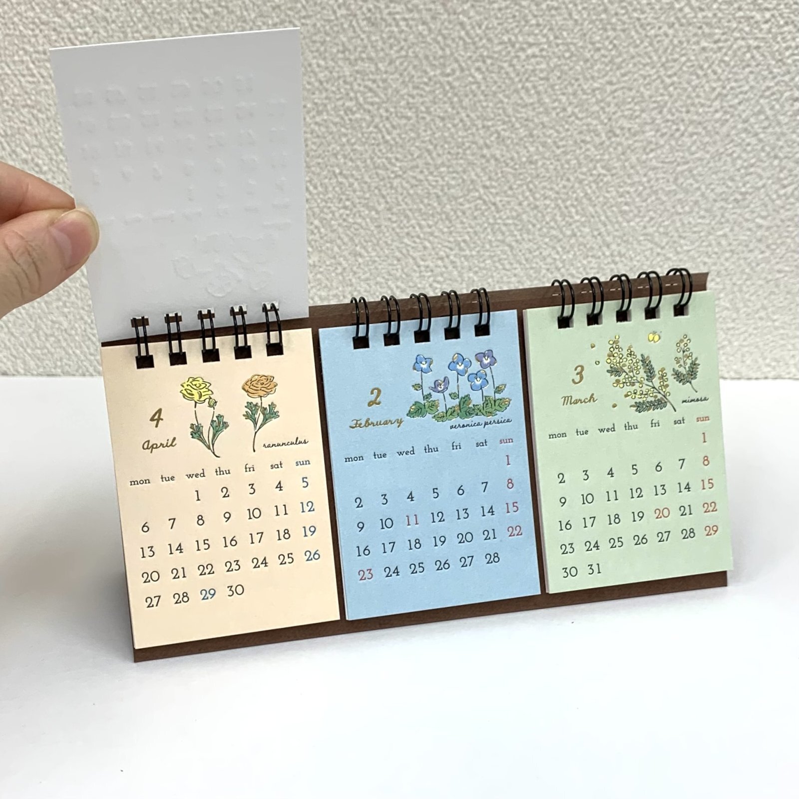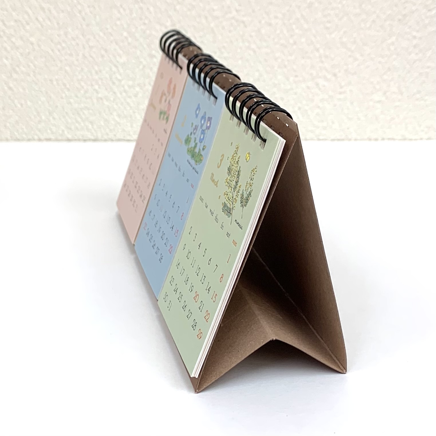 3ヶ月を並べて一度に見ることができる卓上カレンダー。
