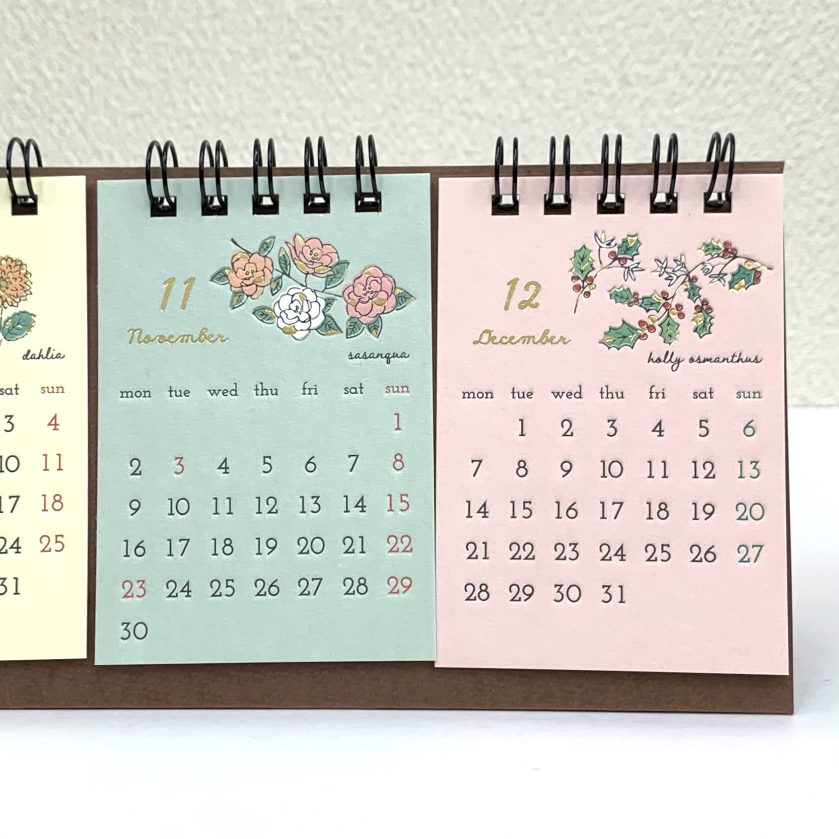 カラーの台紙に毎月違うお花のイラストが添えられたかわいらしく上品なデザイン◎