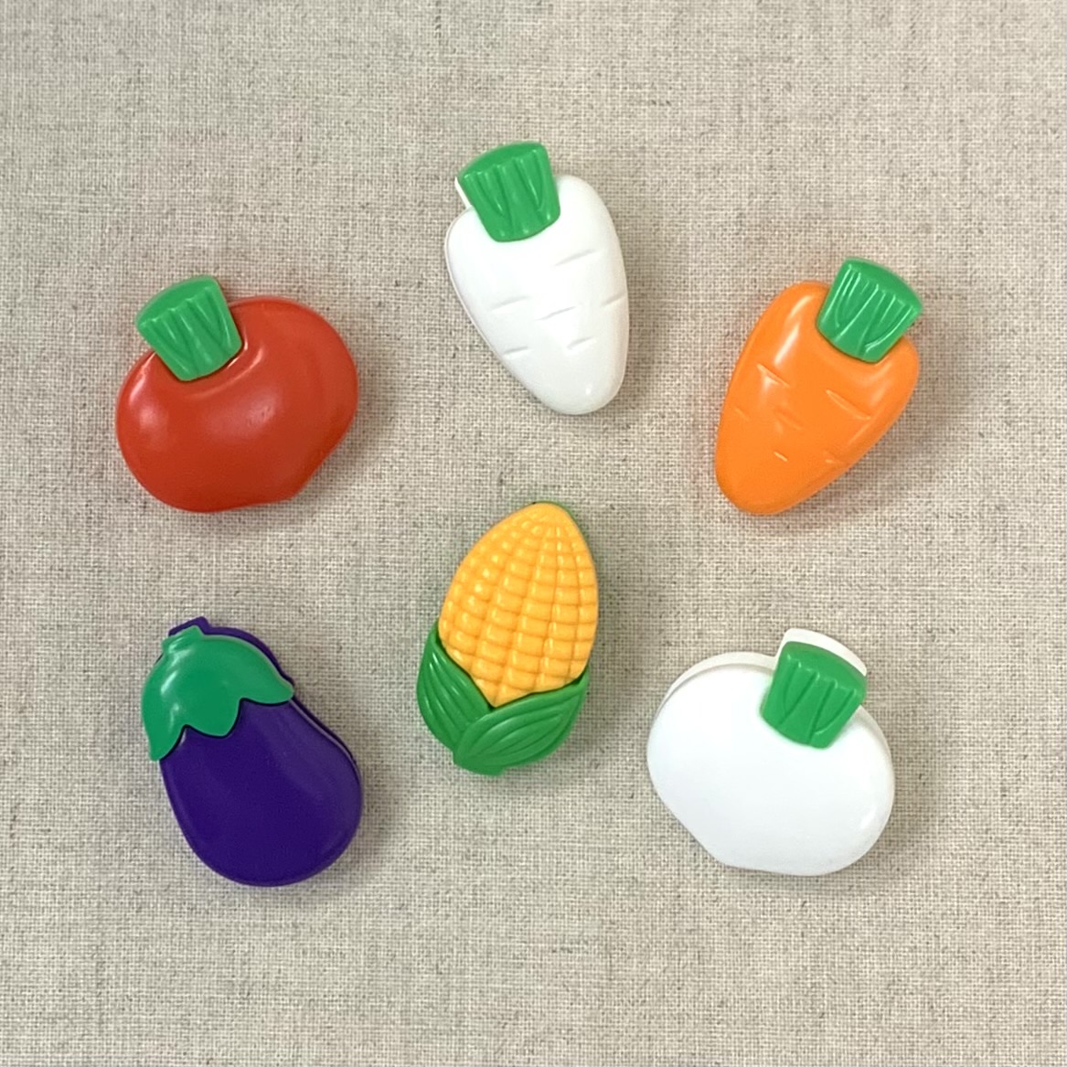にんじん、だいこん、とうもろこし、赤かぶ、白かぶ、なすの6個セット。
