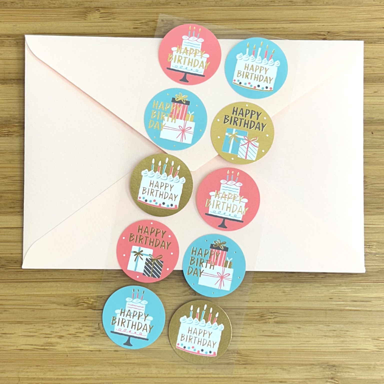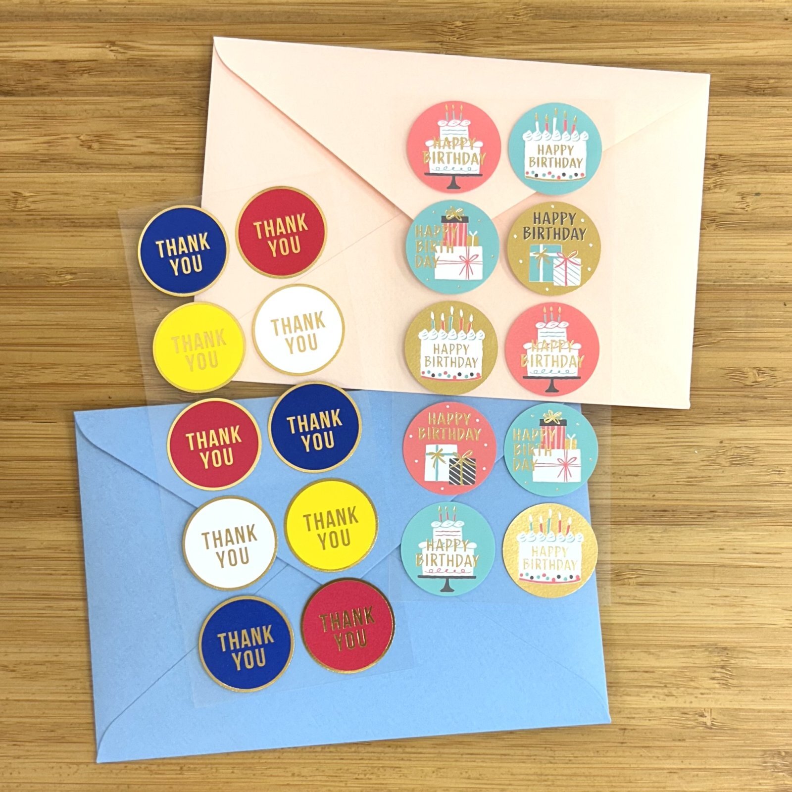 カード・プレゼントのデコレーションやお手紙の封緘にぴったりな丸型シール。